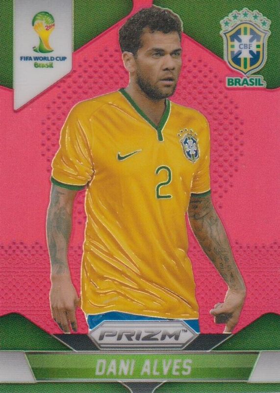 This card is 1 of 12 Dani Alves' card variations in the 2014 Prizm World Cup set being tracked by Sports Card Investor, including Base, Blue & Red Wave, Red White Blue Power Plaid, Silver, and Yellow & Red Pulsar.