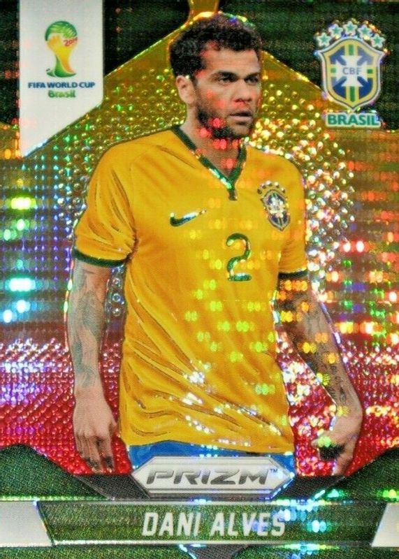 This card is 1 of 12 Dani Alves' card variations in the 2014 Prizm World Cup set being tracked by Sports Card Investor, including Base, Blue & Red Wave, Red White Blue Power Plaid, Silver, and Blue /199.