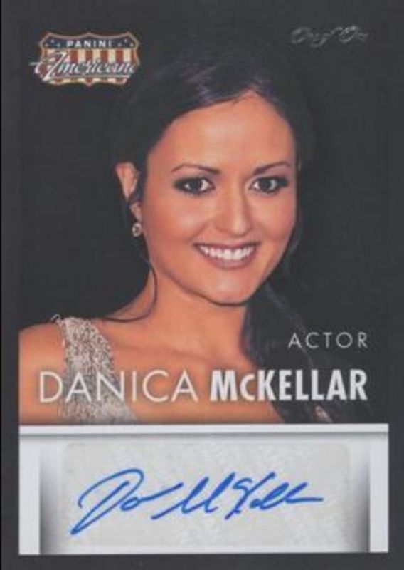 The Danica McKellar 2015 Panini Americana #S-DMK Signatures Black /1 card is 1 of 19 Danica McKellar's card variations in the 2015 Panini Americana set being tracked by Sports Card Investor, including Base, Blue, Red, Green /25, and Black /1.