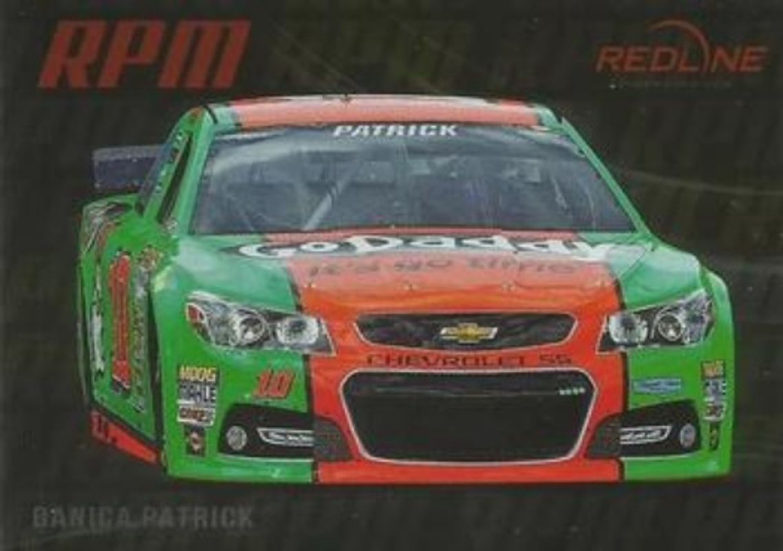 The Danica Patrick 2014 Press Pass Redline #RPM-9 RPM card is 1 of 42 Danica Patrick's card variations in the 2014 Press Pass Redline set being tracked by Sports Card Investor, including #44 Base, #43 Base, #43 Blue Foil, #44 Blue Foil, and #NE-4 Intensity National Convention.