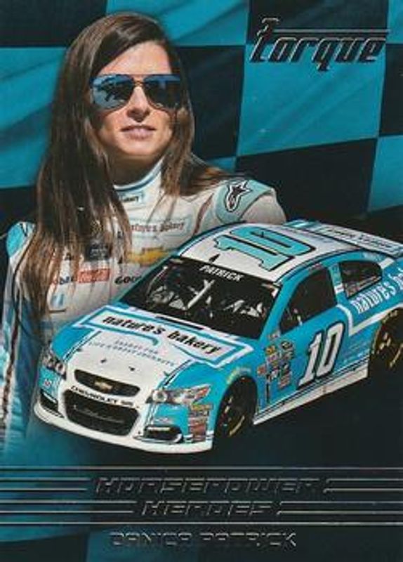 The Danica Patrick 2016 Torque NASCAR #HH24 Horsepower Heroes card is 1 of 110 Danica Patrick's card variations in the 2016 Torque NASCAR set being tracked by Sports Card Investor, including #31 Base, #76 Base, #31 Gold, #76 Gold, and #31 Blue /125.