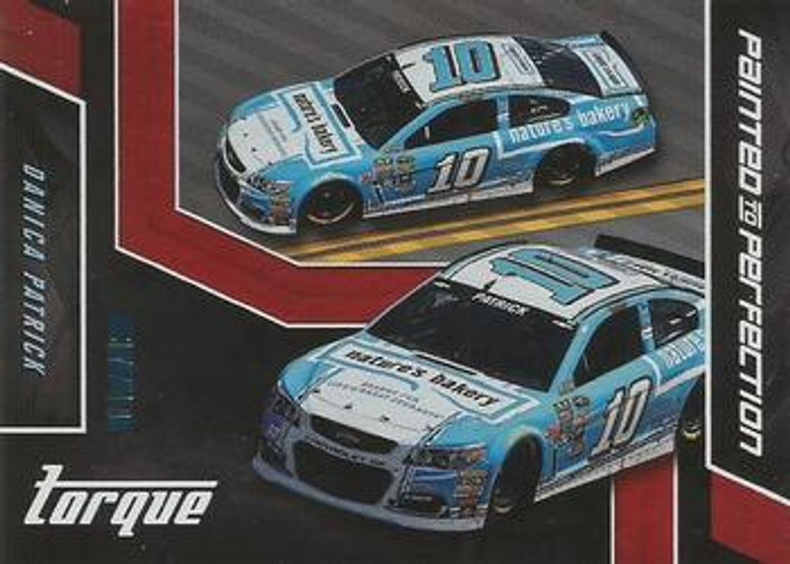 The Danica Patrick 2016 Torque NASCAR #PTP14 Painted to Perfection Red /49 card is 1 of 110 Danica Patrick's card variations in the 2016 Torque NASCAR set being tracked by Sports Card Investor, including #31 Base, #76 Base, #31 Gold, #76 Gold, and #31 Blue /125.