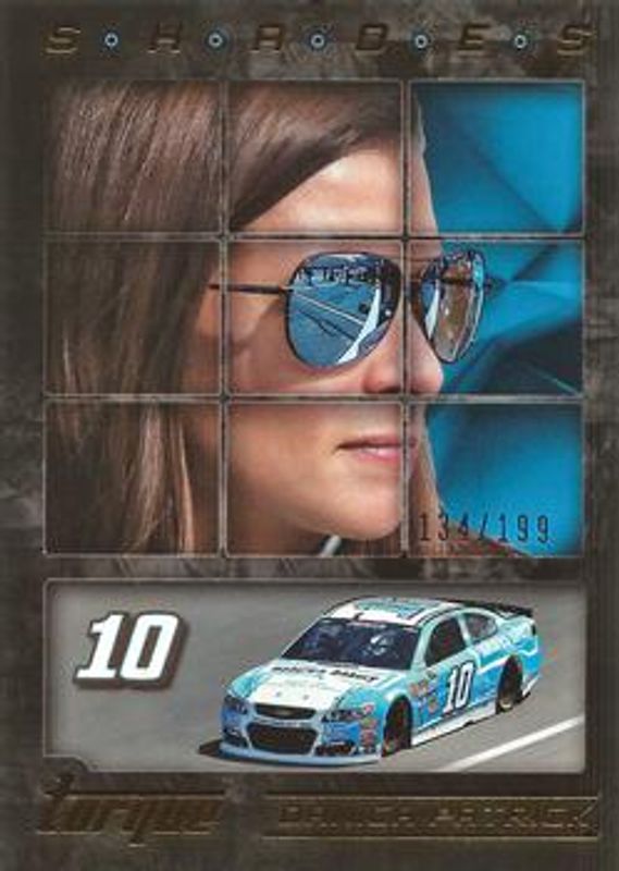 The Danica Patrick 2016 Torque NASCAR #S4 Shades Gold /199 card is 1 of 110 Danica Patrick's card variations in the 2016 Torque NASCAR set being tracked by Sports Card Investor, including #31 Base, #76 Base, #31 Gold, #76 Gold, and #31 Blue /125.