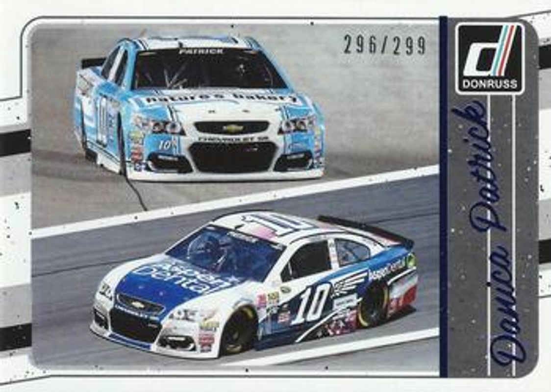 The Danica Patrick 2017 Donruss NASCAR #110 Blue Foil /299 card is 1 of 72 Danica Patrick's card variations in the 2017 Donruss NASCAR set being tracked by Sports Card Investor, including #110 Base, #152 Base, #52 Base, #7 Base, and #94 Base.