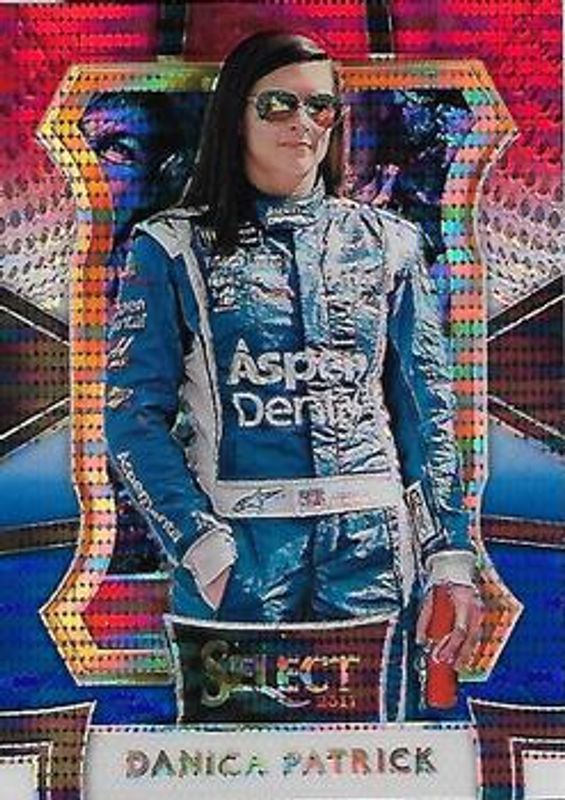 The Danica Patrick 2017 Select NASCAR #41 Red White & Blue Pulsar /299 card is 1 of 87 Danica Patrick's card variations in the 2017 Select NASCAR set being tracked by Sports Card Investor, including #43 Base, #42 Base, #40 Base, #41 Base, and #125 Base.