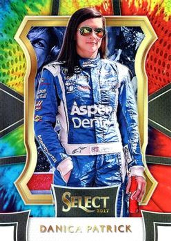 The Danica Patrick 2017 Select NASCAR #41 Tie-Dye /24 card is 1 of 87 Danica Patrick's card variations in the 2017 Select NASCAR set being tracked by Sports Card Investor, including #43 Base, #42 Base, #40 Base, #41 Base, and #125 Base.