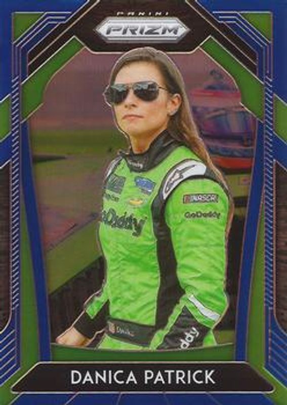 The Danica Patrick 2020 Prizm NASCAR #DANICA Blue card is 1 of 37 Danica Patrick's card variations in the 2020 Prizm NASCAR set being tracked by Sports Card Investor, including Base, Blue & Carolina Blue Hyper, Green & Yellow Hyper, Red, and Red & Blue Hyper.