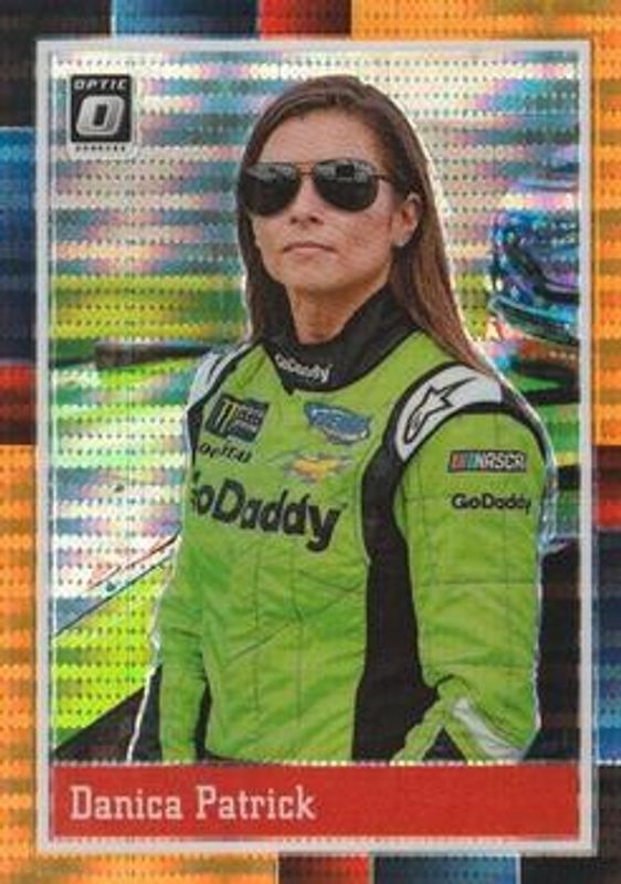 The Danica Patrick 2021 Donruss NASCAR #64 Optic Orange Pulsar card is 1 of 73 Danica Patrick's card variations in the 2021 Donruss NASCAR set being tracked by Sports Card Investor, including #115 Base, #166 Base, #115 Carolina Blue, #166 Carolina Blue, and #115 Orange.