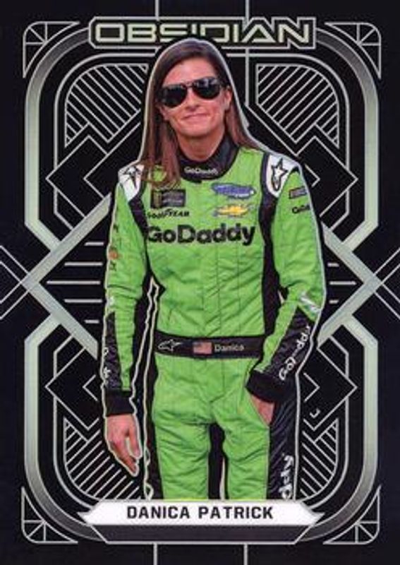 The Danica Patrick 2022 Chronicles NASCAR #18 Obsidian card is 1 of 76 Danica Patrick's card variations in the 2022 Chronicles NASCAR set being tracked by Sports Card Investor, including Absolute, Absolute Autographs, Clearly Donruss, Clear Vision, and Limited.
