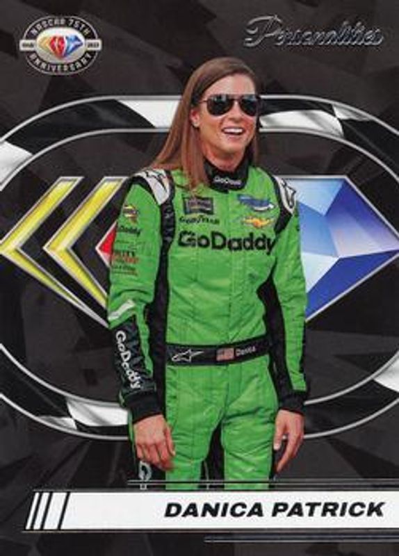 The Danica Patrick 2023 Donruss NASCAR #25 NASCAR 75th Anniversary card is 1 of 67 Danica Patrick's card variations in the 2023 Donruss NASCAR set being tracked by Sports Card Investor, including #176 Base, #91 Base, #176 Carolina Blue, #91 Carolina Blue, and #176 Lime Green.