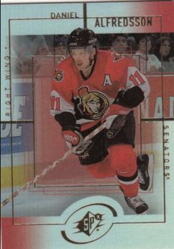 The Daniel Alfredsson 1999 SPx #103 Base /1999 card is 1 of 3 Daniel Alfredsson's card variations in the 1999 SPx set being tracked by Sports Card Investor, including Radiance /100, and Spectrum /1.