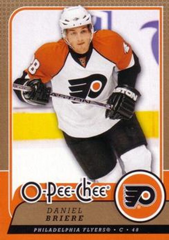 The Daniel Briere 2008 O-Pee-Chee #398 Base card is 1 of 8 Daniel Briere's card variations in the 2008 O-Pee-Chee set being tracked by Sports Card Investor, including 1979 Retro, 1979 Retro Blank Back, Gold, Metal, and Metal X.