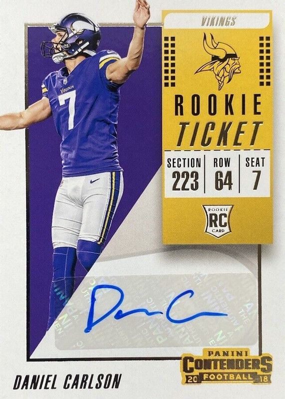 2018 Panini Contenders Rookie Ticket Auto Daniel Carlson #217 Rookie Vikings Rc