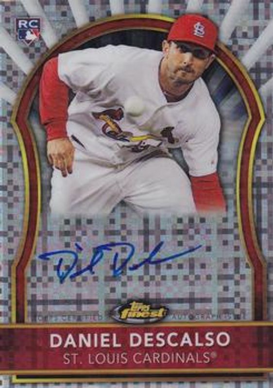 The Daniel Descalso 2011 Topps Finest #100 Rookie Auto - X-Fractor /299 card is 1 of 28 Daniel Descalso's card variations in the 2011 Topps Finest set being tracked by Sports Card Investor, including Base, Refractor /549, X-Fractor /299, Green Refractor /199, and Orange Refractor /99.