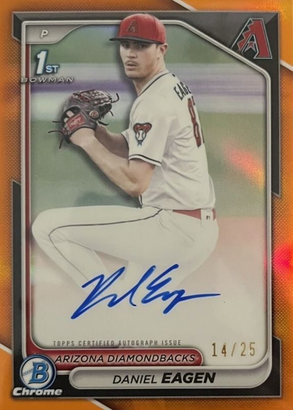 Auctions Ending Soon for Daniel Eagen 2024 Bowman Draft #CPA-DE Chrome Prospect Auto - Orange Refractor /25 (1st) RAW