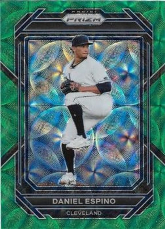 The Daniel Espino 2023 Prizm #96 Green Scope /75 card is 1 of 37 Daniel Espino's card variations in the 2023 Prizm set being tracked by Sports Card Investor, including Base, Blue Ice, Giraffe, Green Ice, and Hyper.