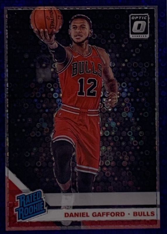 The Daniel Gafford 2019 Optic #153 Fast Break Purple /95 Rookie card in Raw condition has not changed in price in the last 30 days and was last sold for $8.00 .