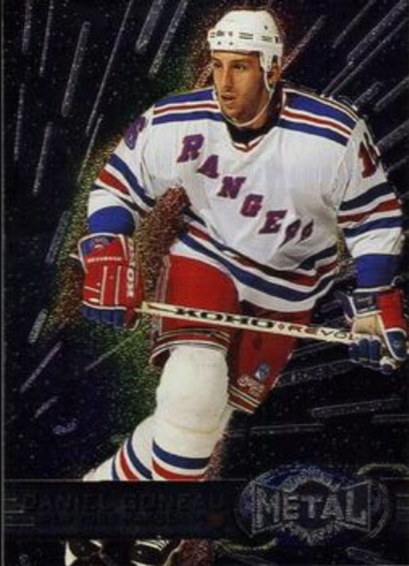 Other popular players in the 1996 Fleer Metal Universe set include Mark Messier, Wendel Clark, Bill Ranford, Adam Oates, and Theo Fleury.