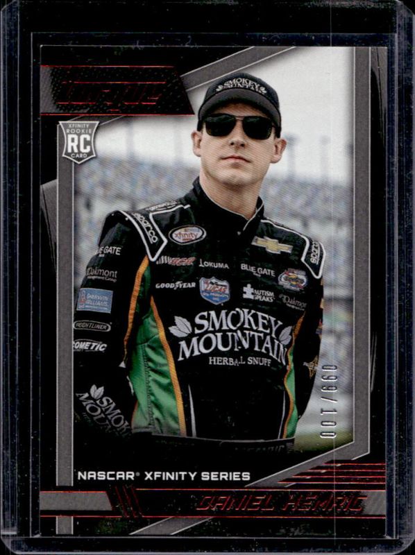 The Daniel Hemric 2017 Torque NASCAR #37 Red /100 card is 1 of 36 Daniel Hemric's card variations in the 2017 Torque NASCAR set being tracked by Sports Card Investor, including Jumbo Firesuit Signatures Purple /10, Jumbo Firesuit Signatures Red /25, Clear Vision, Artist Proof /75, and Clear Vision Blue /99.