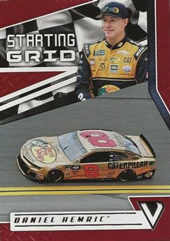 The Daniel Hemric 2019 Victory Lane NASCAR #S24 Starting Grid Rookie card is 1 of 31 Daniel Hemric's card variations in the 2019 Victory Lane NASCAR set being tracked by Sports Card Investor, including Base, Gold /25, Black /1, Printing Plates Black /1, and Printing Plates Cyan /1.