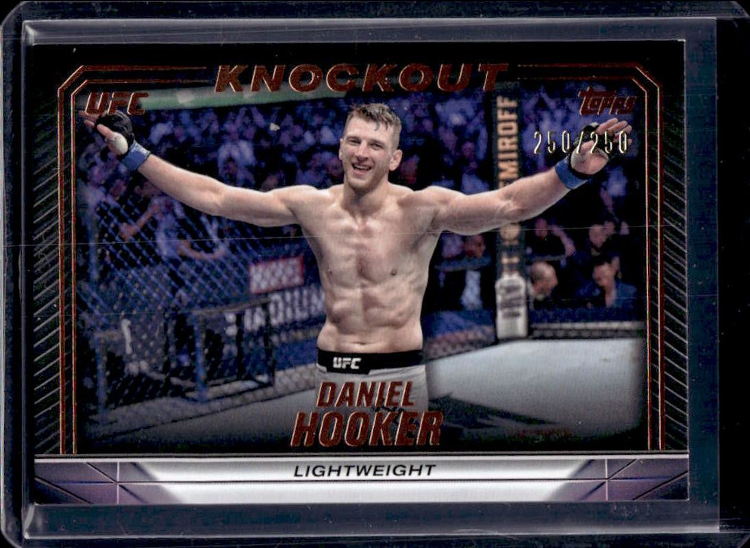 The Daniel Hooker 2024 Topps Knockout UFC #52 Bronze /250 card is 1 of 11 Daniel Hooker's card variations in the 2024 Topps Knockout UFC set being tracked by Sports Card Investor, including Base, Orange, Holo Silver /125, Purple /99, and Blue /50.