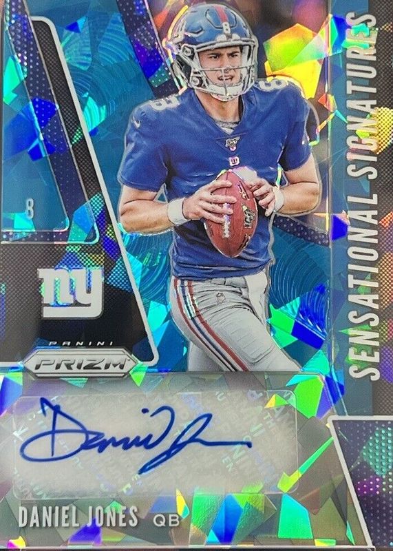 2019 Panini Prizm Blue Cracked Ice Sensational Signatures Daniel Jones 65/99 Aut