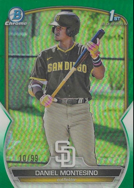 Best Prices Available For Sale of Daniel Montesino 2023 Bowman #BCP-114 Chrome Prospects - Green Refractor /99 (1st)