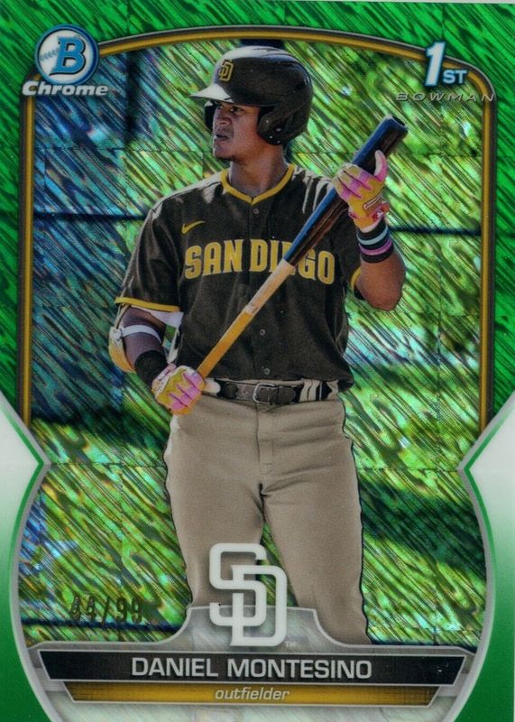 Auctions Ending Soon for Daniel Montesino 2023 Bowman #BCP-114 Chrome Prospects - Green Shimmer Refractor /99 (1st) RAW