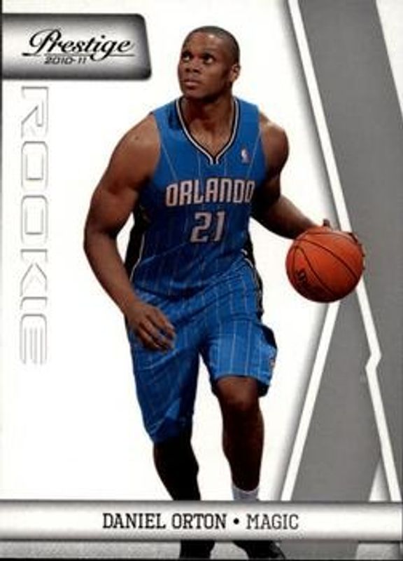 The Daniel Orton 2010 Prestige #179 Base Rookie card is 1 of 31 Daniel Orton's card variations in the 2010 Prestige set being tracked by Sports Card Investor, including #238 Bonus Shots Orange /499, #179 Bonus Shots Orange /499, #179 Bonus Shots Gold /249, #238 Bonus Shots Gold /249, and #179 Bonus Shots Purple /49.