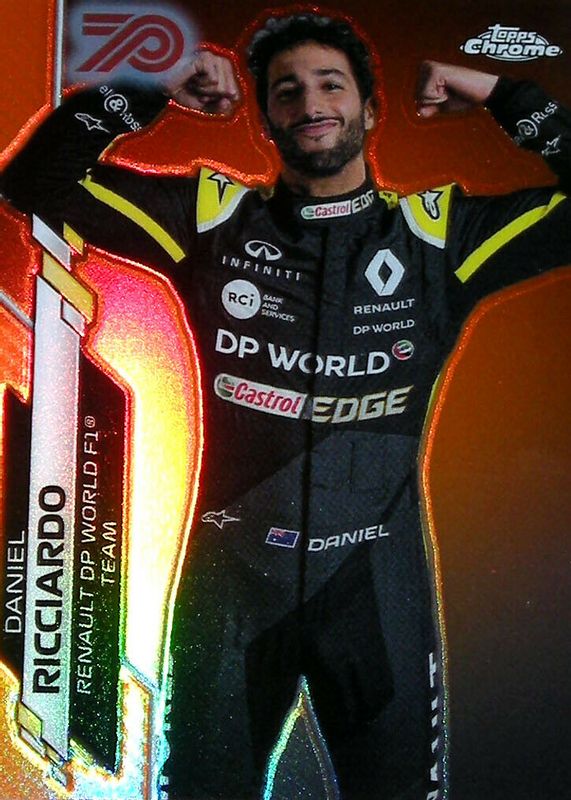 This card is 1 of 59 Daniel Ricciardo's card variations in the 2020 Topps Chrome Formula 1 set being tracked by Sports Card Investor, including Base, 70th Anniversary Gold Refractor, 70th Anniversary Red Refractor, 70th Anniversary Superfractor, and F1 Cars - 70th Anniversary Gold Refractor.