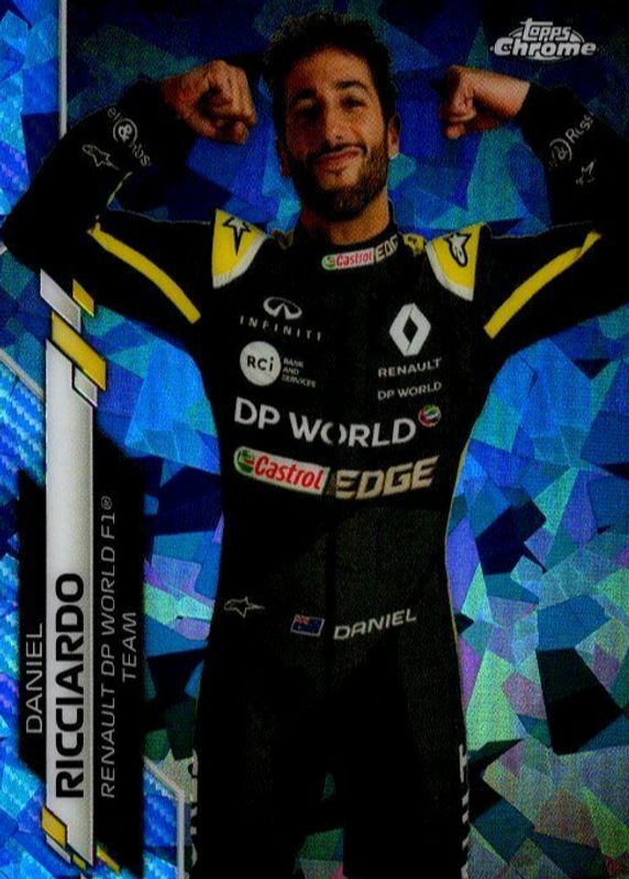 This card is 1 of 24 Daniel Ricciardo's card variations in the 2020 Topps Chrome Formula 1 Sapphire Edition set being tracked by Sports Card Investor, including F1 Cars, F1 Racers, Aqua /99, F1 Cars - Aqua /99, and F1 Racers - Aqua /99.