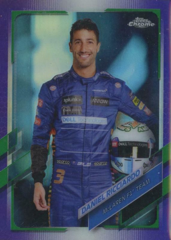 The Daniel Ricciardo 2021 Topps Chrome Formula 1 #5 Purple & Green Refractor card in Raw condition has not changed in price in the last 30 days and was last sold for $0.99 .
