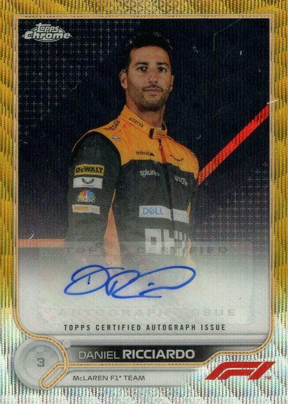 2022 Topps Chrome F1 Daniel Ricciardo Autograph Gold Wave #3/50 Driver number