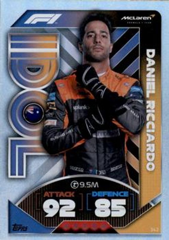 The Daniel Ricciardo 2022 Topps Turbo Attax Formula 1 #342 Base card is 1 of 36 Daniel Ricciardo's card variations in the 2022 Topps Turbo Attax Formula 1 set being tracked by Sports Card Investor, including #273 Base, #220 Base, #253 Base, #294 Base, and #45 Base.