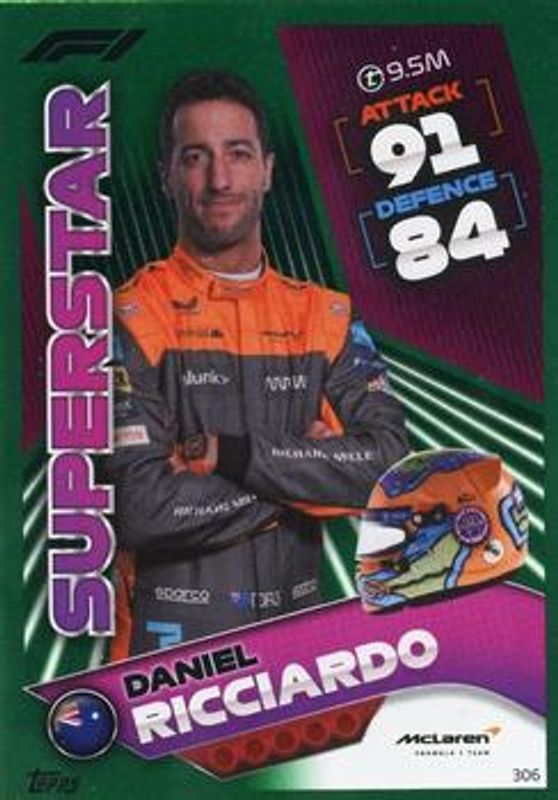 Daniel Ricciardo 2022 Topps Turbo Attax Formula 1 #306 Mirror Foil Green /500 RAW Price Guide