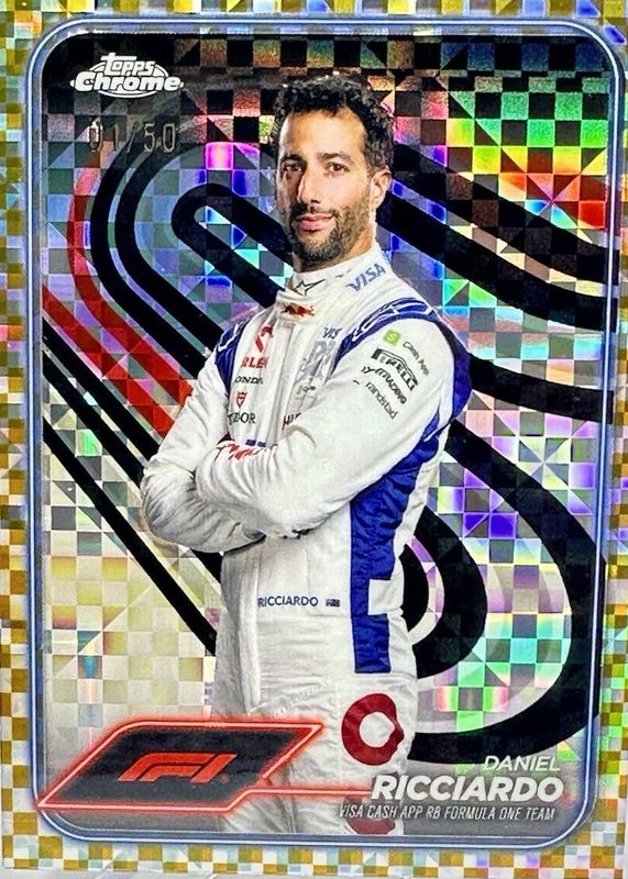 Best Prices Available For Sale of Daniel Ricciardo 2024 Topps Chrome Formula 1 #18 Gold Checker Flag Refractor /50