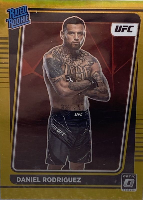 The Daniel Rodriguez 2022 Optic UFC #109 Gold /10 Rookie card in Raw condition has not changed in price in the last 30 days and was last sold for $51.75 .