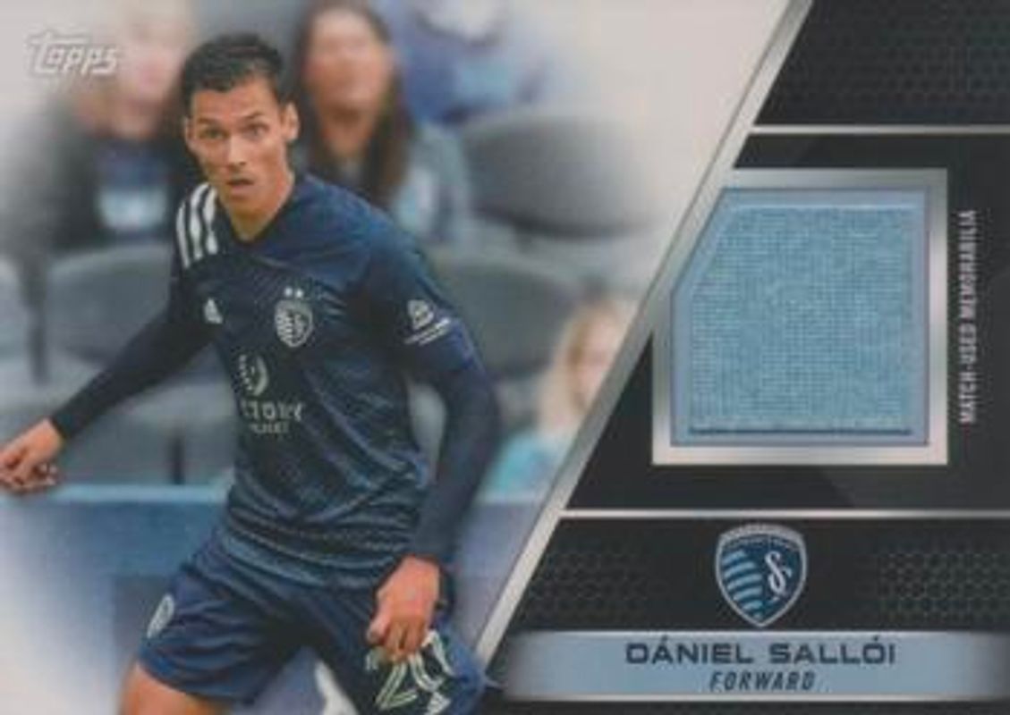 The Daniel Salloi 2022 Topps MLS #R-DS Relics /1300 card is 1 of 12 Daniel Salloi's card variations in the 2022 Topps MLS set being tracked by Sports Card Investor, including Big City Strikers, Scholarly, Relics - Gold /50, Big City Strikers - Orange /25, and Relics - Orange /25.
