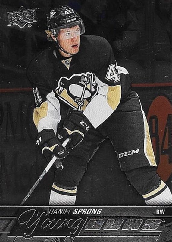 The Daniel Sprong 2015 Upper Deck #226 Young Guns - Foil Rookie card in Raw condition has not changed in price in the last 30 days and was last sold for $3.63 .
