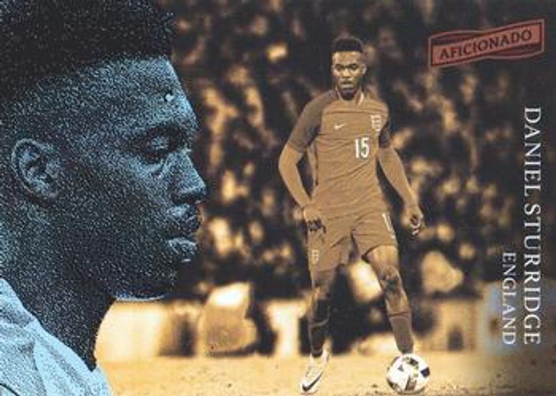 The Daniel Sturridge 2016 Aficionado #38 Base card is 1 of 6 Daniel Sturridge's card variations in the 2016 Aficionado set being tracked by Sports Card Investor, including Artist's Proof, First Kick, Artist's Proof Red /99, Artist's Proof Bronze /49, and Artist's Proof Gold /1.