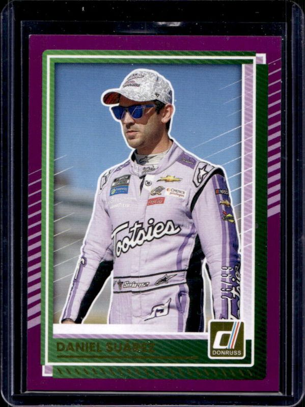 The Daniel Suarez 2025 Donruss NASCAR #8 Purple /99 card is 1 of 46 Daniel Suarez's card variations in the 2025 Donruss NASCAR set being tracked by Sports Card Investor, including Base, Laser, Red /299, Blue /199, and Lime Green /199.