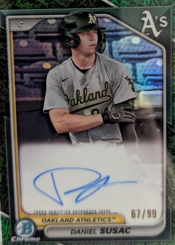 The Daniel Susac 2024 Bowman #CPA-DS Chrome Prospect Auto - Green Grass Refractor /99 card in Raw condition has not changed in price in the last 30 days and was last sold for $13.00 .