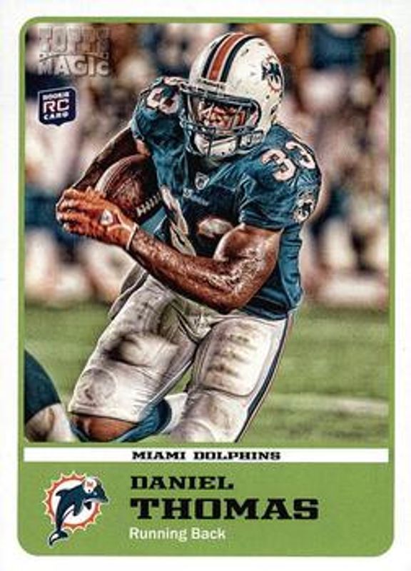 The Daniel Thomas 2011 Topps Magic Rookies #30b Base card is 1 of 4 Daniel Thomas' card variations in the 2011 Topps Magic Rookies set being tracked by Sports Card Investor, including Base, Autographs, and Autographs - Black Border /1.