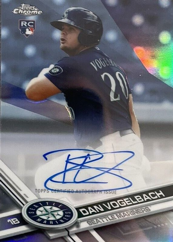 This card is 1 of 11 Daniel Vogelbach's card variations in the 2017 Topps Chrome set being tracked by Sports Card Investor, including Rookie Auto, Rookie Auto - Purple Refractor /250, Rookie Auto - Blue Refractor /150, Rookie Auto - Green Refractor /99, and Rookie Auto - Blue Wave Refractor /75.