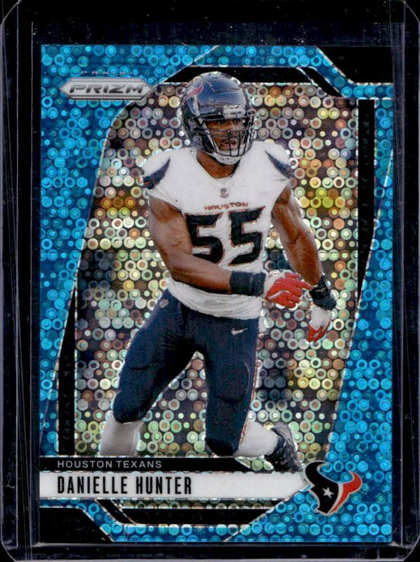 The Danielle Hunter 2024 Prizm #117 No Huddle Blue /99 card is 1 of 84 Danielle Hunter's card variations in the 2024 Prizm set being tracked by Sports Card Investor, including Base, Choice Blue Yellow Green, Choice Silver, Disco, and Green.
