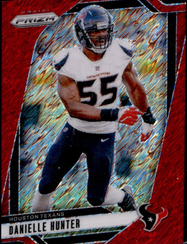 The Danielle Hunter 2024 Prizm #117 Red Shimmer /35 card is 1 of 84 Danielle Hunter's card variations in the 2024 Prizm set being tracked by Sports Card Investor, including Base, Choice Blue Yellow Green, Choice Silver, Disco, and Green.