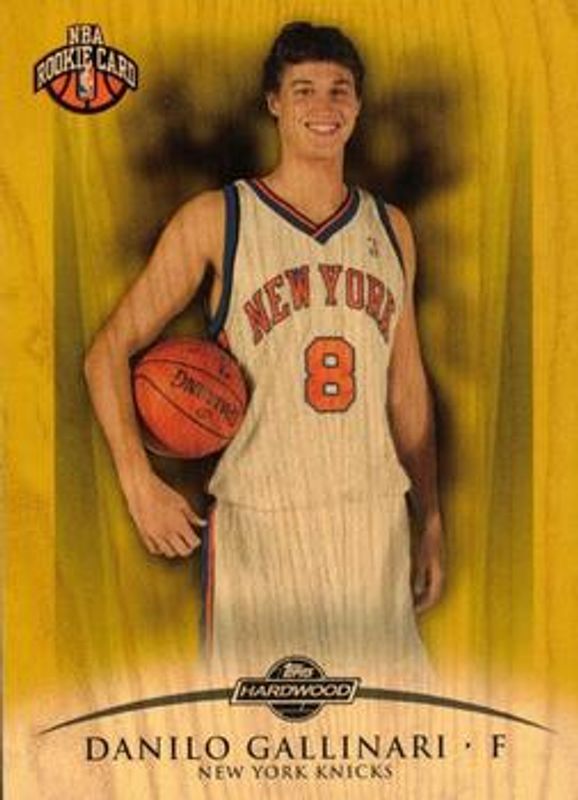 The Danilo Gallinari 2008 Topps Hardwood #106b Maple /175 Rookie card is 1 of 18 Danilo Gallinari's card variations in the 2008 Topps Hardwood set being tracked by Sports Card Investor, including #106 Hardwood /299, #106b Hardwood /299, #106 Maple /175, #106b Mahogany /75, and #106b Redwood /15.