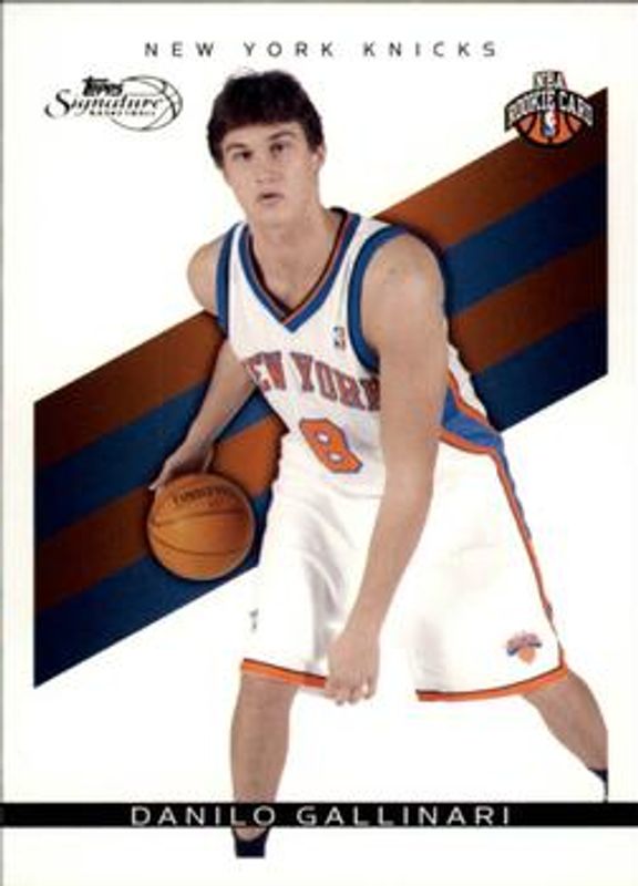The Danilo Gallinari 2008 Topps Signature #TS-DGA Base /2325 Rookie card is 1 of 4 Danilo Gallinari's card variations in the 2008 Topps Signature set being tracked by Sports Card Investor, including Autographs /917, Facsimile Red /869, and Facsimile Black /289.