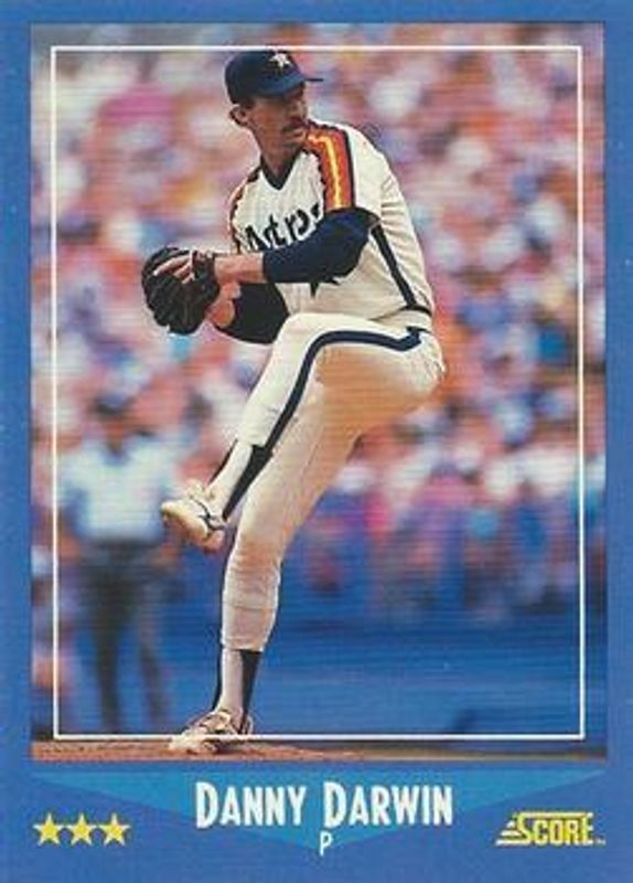 The Danny Darwin 1988 Score #184 Glossy card is 1 of 2 Danny Darwin's card variations in the 1988 Score set being tracked by Sports Card Investor, including Base.