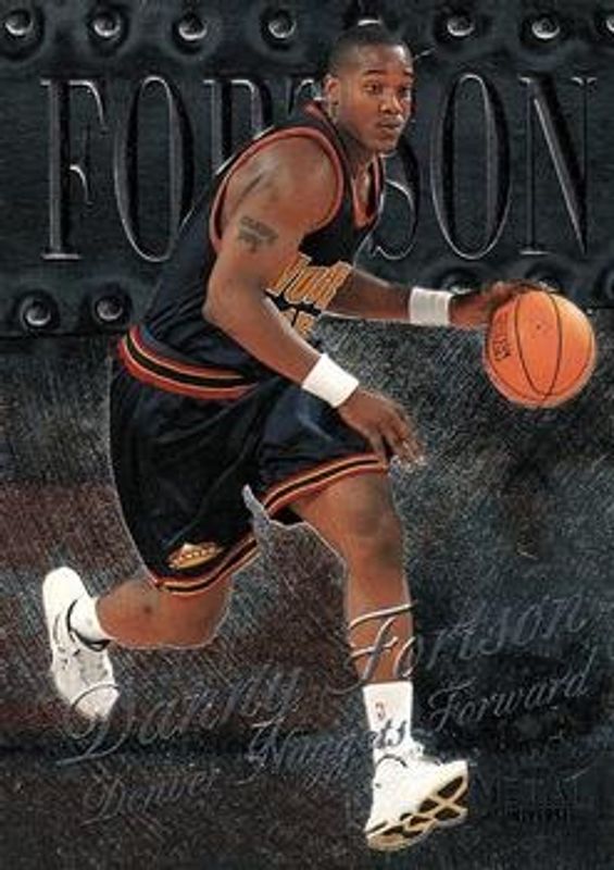The Danny Fortson 1998 Metal Universe #99 Base card is 1 of 5 Danny Fortson's card variations in the 1998 Metal Universe set being tracked by Sports Card Investor, including Gem Masters /1, Neophytes, Autographics, and Precious Metal Gems /50.